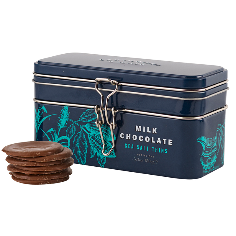 Sea Salt Chocolate Thins are thin chocolate discs, made of creamy milk chocolate with a touch of Anglesey salt. These thins make for a perfect snack with a pure and delicious chocolate taste.