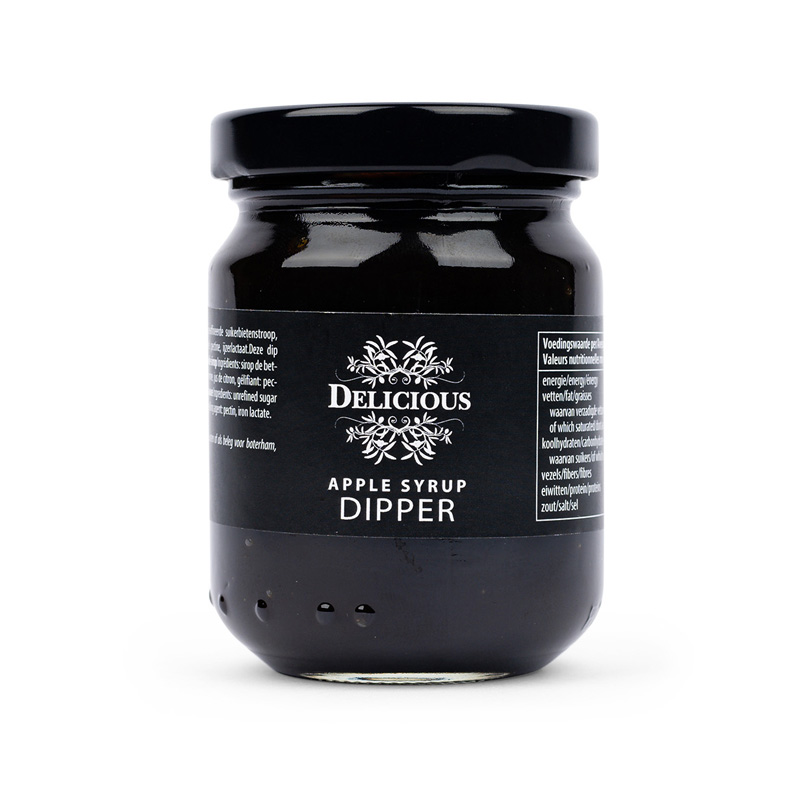 Apple Syrup Dip. Prepared with a delicious unrefined sugar beet syrup. This dip completes any cheese board. Delicious with all (old) cheese and pate varieties or as a filling for sandwiches, pancake and dessert. For a delicious sweet-sweet taste experience, dip a block of goat cheese!