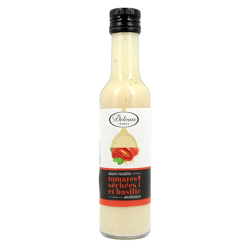 Water, sunflower oil (30%), Dijon MUSTARD (MUSTARD seeds, alcohol vinegar, water, salt), EGG yolk (4,5%), white wine vinegar, sugar, salt, concentrated lemon juice, dried tomatoes (1%) (tomatoes, salt), basil (1%), alcohol vinegar, garlic, corn starch, tickener : xanthan gum.