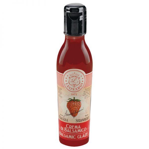This Leonardi Balsamic Glaze Flavoured Date is produced with typical Modenese grape must, concentrated and blended with an aged Balsamic: its main feature is the high thickness and the great cooking versatility. Strawberry flavour is added for an extra dimension of decadent sweetness.