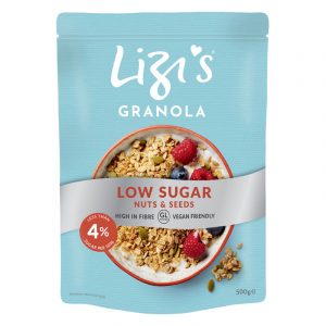 All the Lizi’s granolas are specially formulated to have a low GL (glycaemic load) per serving. This means that unlike many breakfast cereals the energy is released slowly, keeping you feeling fuller for longer. A single 50g serving should keep you going until lunchtime and avoid the mid morning cravings that come with so many other cereals.