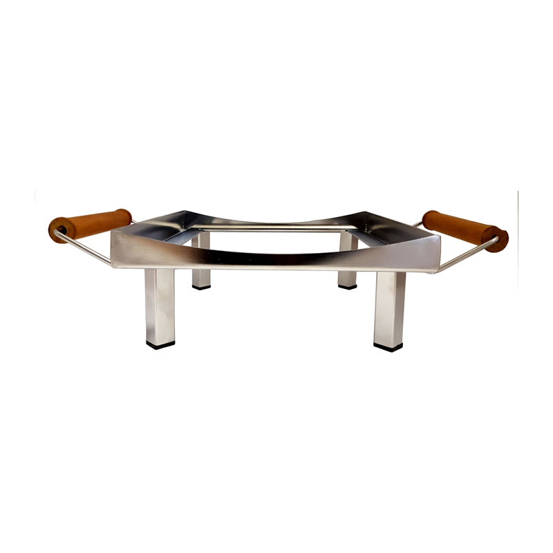 A metal holder made to perfectly withstand a plate of Himalayan salt. Excellent to assist when you want to make something with this same dish or simply to store it when not in use.