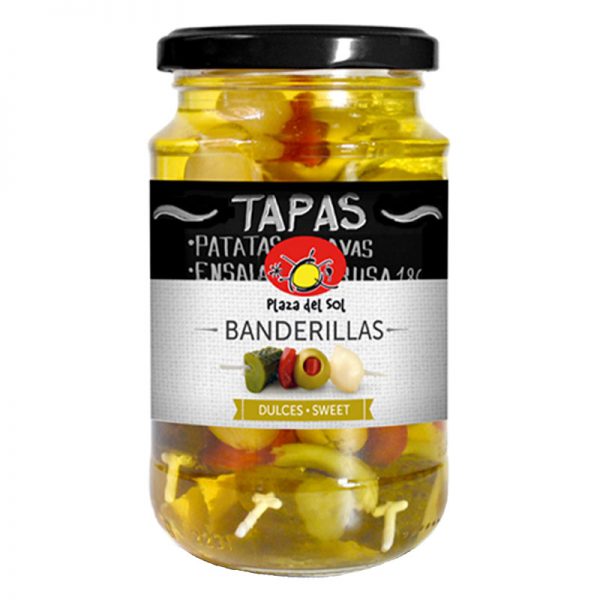Plaza Del Sol Banderillas will give you an authentic taste of Spain at home. It is a skewer of pickles, made with onions, pickle slices, olives stuffed with peppers and a chilli. It is a “tapa” for itself, very popular in Spain, and is ideal for snacks.