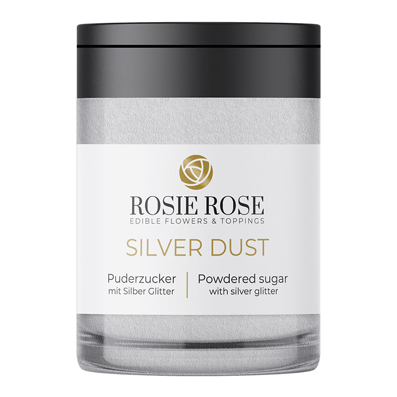 Silver Dust is made from high-quality powdered sugar with colored glitter. It is tasteless and ideal for fine pastries, hot drinks, or elegant accents on cakes.
