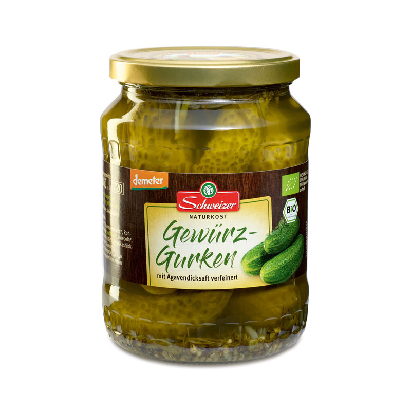 Schweizer Cucumbers are fermented with milk and comes from German cultivation, governed by strict Bioland rules. Bioland is the largest organic-food association in Germany, governed by high standards of biodynamic agriculture, encouraging sustainability, working with nature and being mindful of the environment.