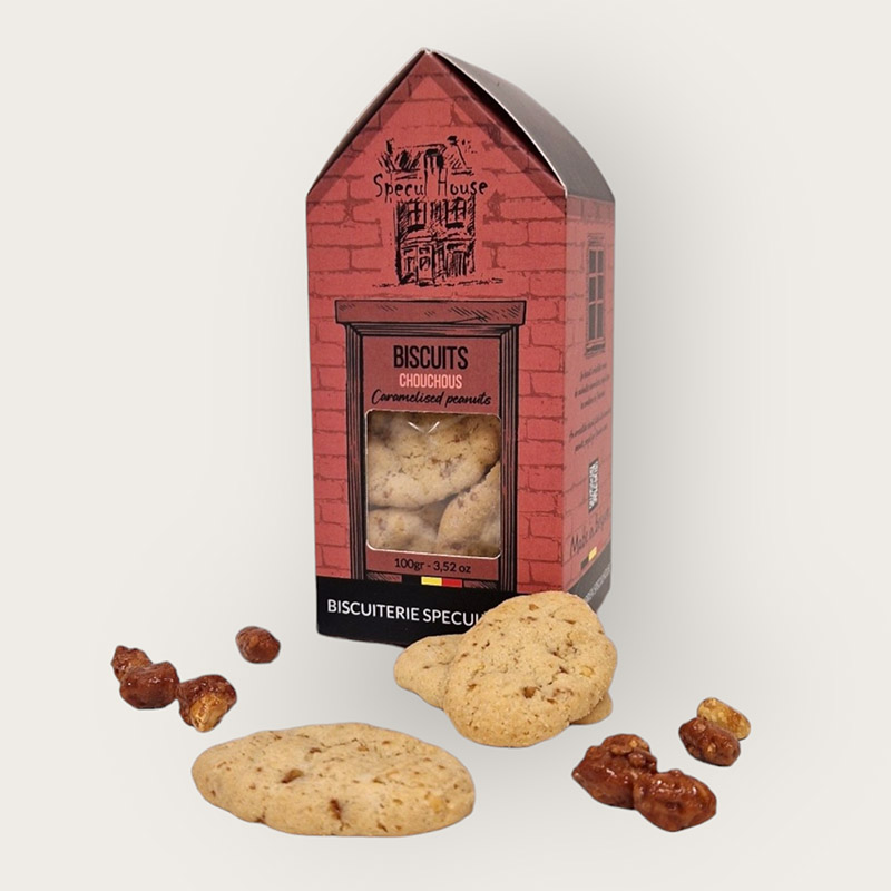 Dive into the delicious world of the Chouchou biscuit, where every bite surprises you with the sweet caramel coating crunchy peanuts, perfectly integrated into a light and flavorful dough. This biscuit is designed to tantalize your taste buds, with a perfect balance between sweet and crunchy. Freshness guaranteed: Specul House only uses fresh, high-quality ingredients.