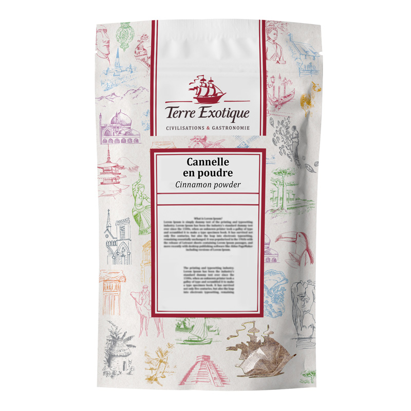 Ground Ceylon Cinnamon (Cinnamomum zeylanicum). Packed in France.