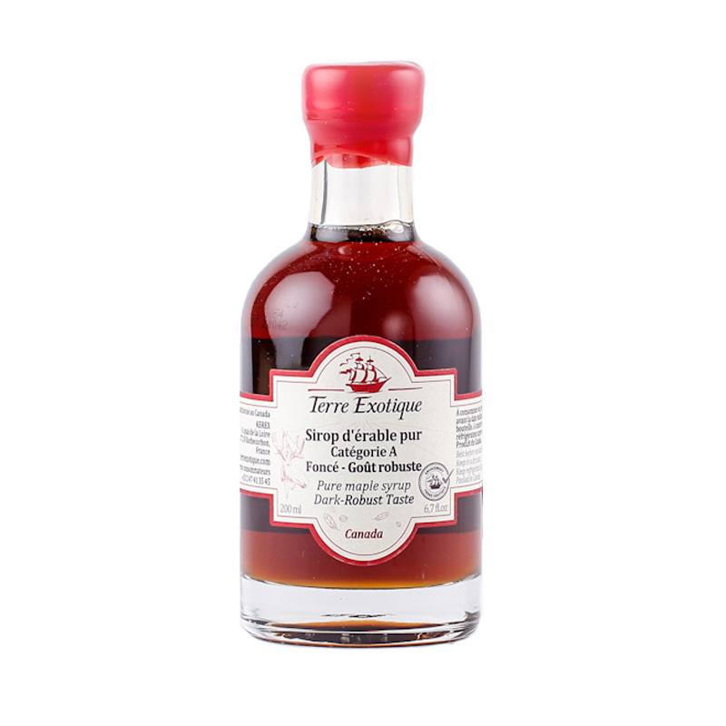 Terre Exotique selected this amber maple syrup from master maple producer “Martin Malenfrant”. Its maple grove is located in the Appalachian mountains, in the boreal forest of Gaspésie. Today, its maple grove operates 65,000 taps dedicated solely to organic maple syrup and 5,000 taps dedicated to the production of organic cherry syrup.