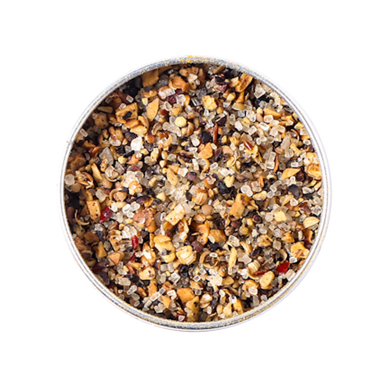 Sugar, coriander, dehydrated vegetables (garlic, onion, red, bell pepper), sea salt, black pepper, maple sugar, maple natural, essence, vegetal oil (canola).