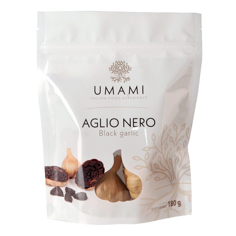 Umami’s Black Garlic is a gourmet product derived from Polesano PDO White Garlic. The brand uses a long maturation process with controlled temperature, ranging from 60 to 77°C (140 to 170°F), and humidity for about a month. No additives, preservatives added.