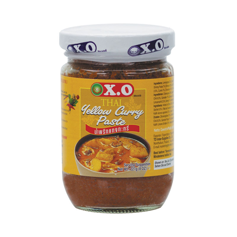 X.O’s Yellow Curry Paste contains a spicy mixture of red pepper, citronella and fresh Thai spices in order to bring you a flavorful Yellow Curry!