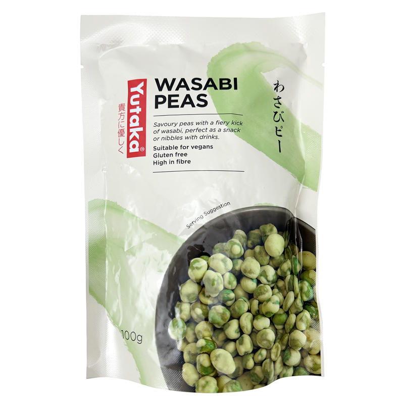 Wasabi peas are created by roasting green peas, then coating them in a thin layer of wasabi flavoured tempura and roasting again until they have the perfect amount of crunch. Wasabi peas are one of our most popular items and a firm Japan Centre favourite.