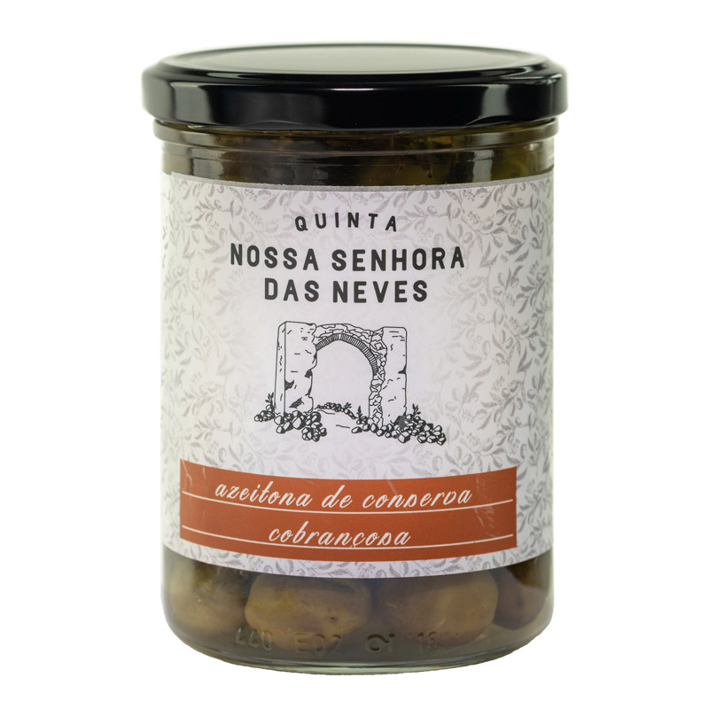 Com a Serra de Medro no horizonte, os olivais que envolvem as ruínas da secular ermida da Nossa Senhora das Neves, brindam-nos ano após ano, com azeitonas de qualidade impar. Desde 1973, as oliveiras da propriedade e o seu fruto são o centro das atenções. O fruto do trabalho ao longo de cada ano culmina na colheita, onde são selecionadas as melhores azeitonas no seu estado de maturação óptimo. Só meses mais tarde, depois de um processo cura natural, se começam a saborar as primeiras azeitonas de conserva, tal como as que se encontra, no interior deste frasco. Nesta cura natural não entra mais nada, para além do tempo, água, sal, orégãos e louro.