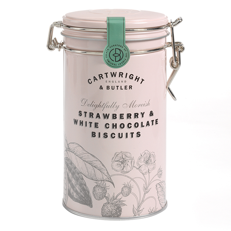 Biscoitos de Morango e Chocolate Branco em Lata Cartwright & Butler 200g
