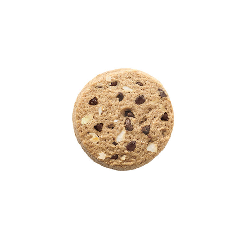 Farinha de TRIGO (GLÚTEN), óleos vegetais (azeite, girassol e coco), açúcar, chocolate preto (cacau, açúcar, manteiga de cacau, lecitina de girassol) (15%), coco desidratado (5%), sal.