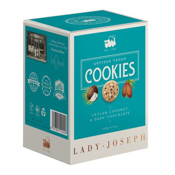 Deliciosos biscoitos com chocolate preto e coco do Ceilão. Desde a primeira dentada deixe-se invadir pelo mais cremoso e intenso chocolate preto e coco doce. Vegano, natural, com ingredientes de primeira qualidade. Sem aditivos ou óleo de palma.