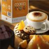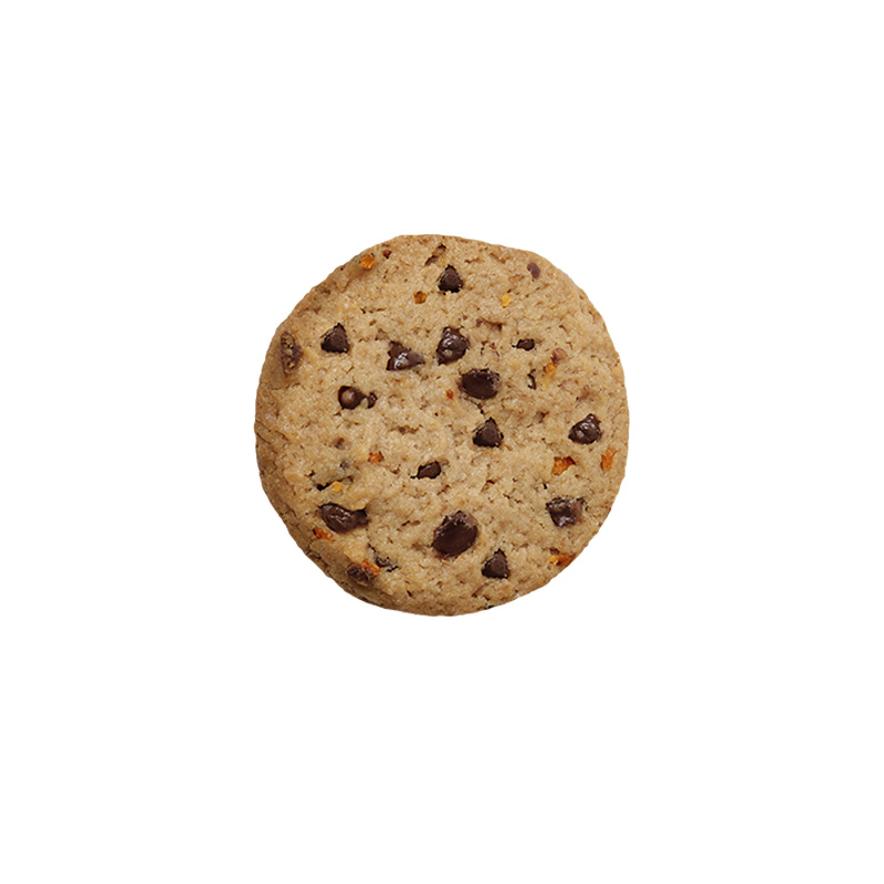 Farinha de TRIGO (GLÚTEN), óleos vegetais (azeite, girassol e coco), açúcar, chocolate preto (cacau, açúcar, manteiga de cacau, lecitina de girassol) (15%), laranja desidratada (5%), sal.