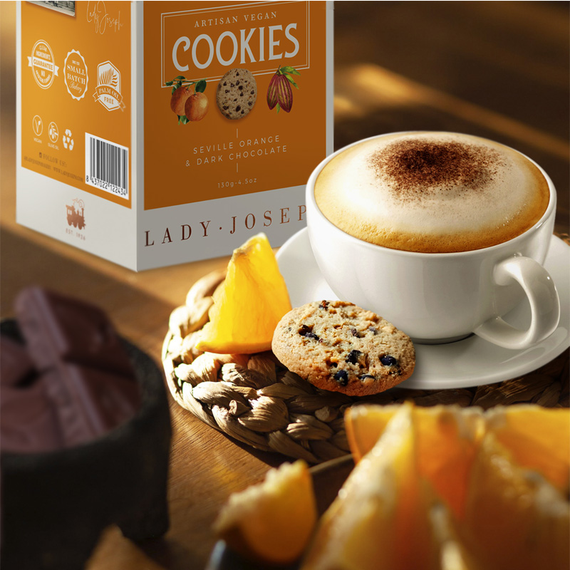 Desde a primeira dentada deixe-se invadir pelo chocolate preto cremoso e intenso e pela laranja requintada. Biscoitos veganos, sem aditivos ou conservantes, sem óleo de palma.