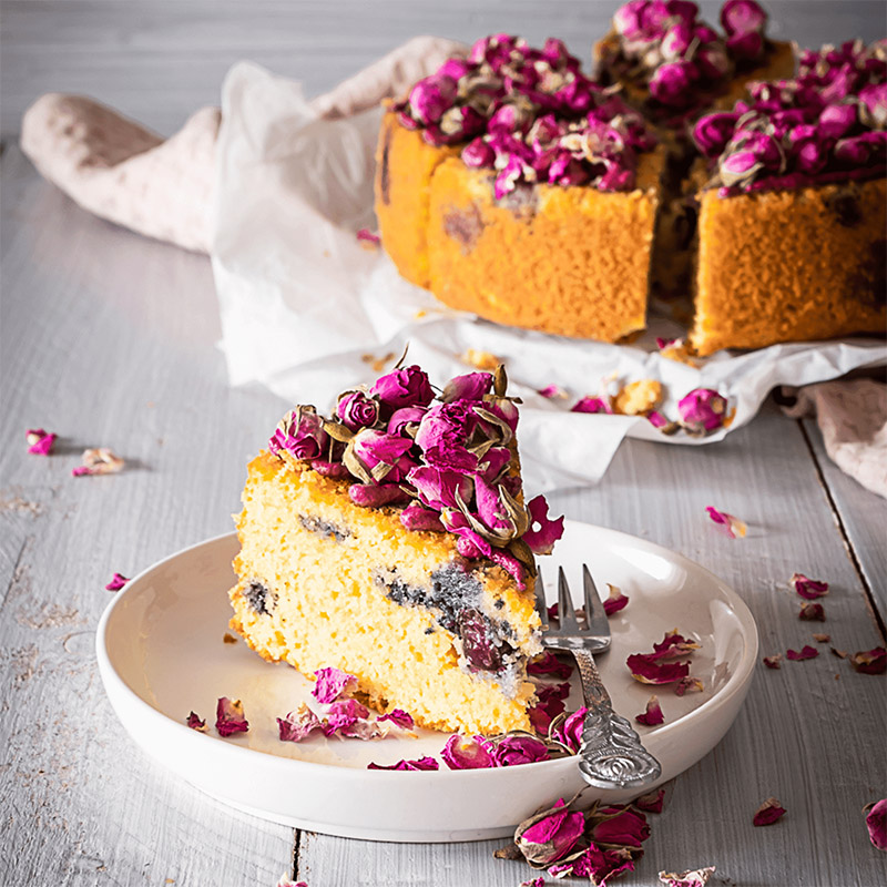 Os botões de Rosa Damascena são cuidadosamente selecionados e secos delicadamente para preservar a sua cor, aroma e fragrância. As Rosas Damascenas não são pulverizadas nem contêm aditivos. Com as flores de ROSIE ROSE, pode dar asas à sua criatividade na cozinha. Seja como ingrediente para saladas, sopas, molhos ou doces, ou como decoração para cocktails, batidos e gelados, as possibilidades são infinitas.