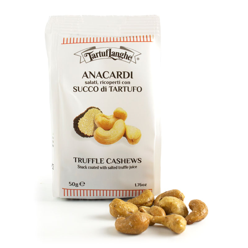 Saborosos cajus torrados e salgados, cobertos com uma fina camada de sumo de trufas de verão.