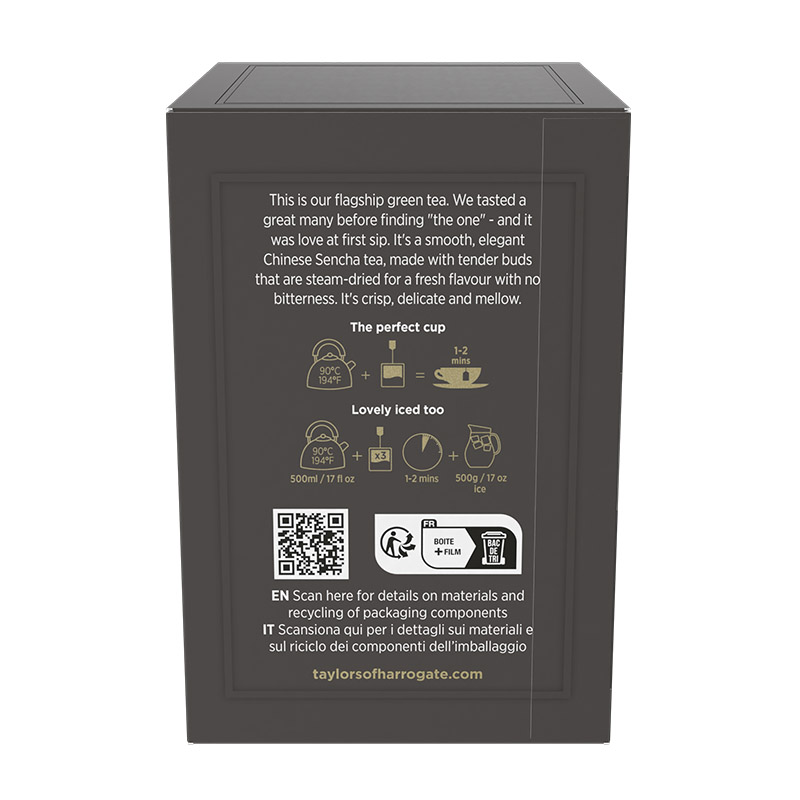 T Taylors provou vários antes de encontrar “o ideal”, e ele impressionou imediatamente. Originário da província de Zhejiang, no leste da China, é uma variedade de chá verde chamada sencha, que é seca a vapor. O processo é delicado e suave com as folhas, ajudando a preservar o seu sabor delicado. Isto é muito importante quando se trata de chá verde, que é celebrado pela sua subtileza e delicadeza.