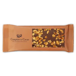 Chocolate com manteiga de cacau pura (negro: 70% de cacau (mínimo), leite: 38% de cacau (mínimo) e chocolate branco). Açúcar, pasta de cacau, manteiga de cacau, LEITE gordo em pó, LEITE magro em pó, AVELÃ, AMÊNDOA, farinha (TRIGO, AVEIA), MANTEIGA d’Isigny DOP, NATA fresca d’Isigny DOP, frutas secas (framboesa, amora, mirtilo, groselha, morango), PISTACHIO, coco, pasta de AVELÃ, soro de leite em pó (LEITE), LEITE concentrado, gordura anidra de LEITE, proteína de LEITE, açúcar de LEITE, açúcar invertido, malte de TRIGO, extrato de malte de CEVADA, Amido de TRIGO, edulcorante (sorbitol), xarope de glucose, xarope de açúcar doce, óleos vegetais (colza, palma), canela, mel, gordura não hidrogenada (coco), sal, agente de revestimento (goma arábica), humectante (glicerina), agente levedante (bicarbonato de sódio), emulsionante (lecitina de SOJA e de colza), aroma natural (baunilha, amarena, speculoos), corantes alimentares (concentrado de rabanete, groselha preta e maçã).