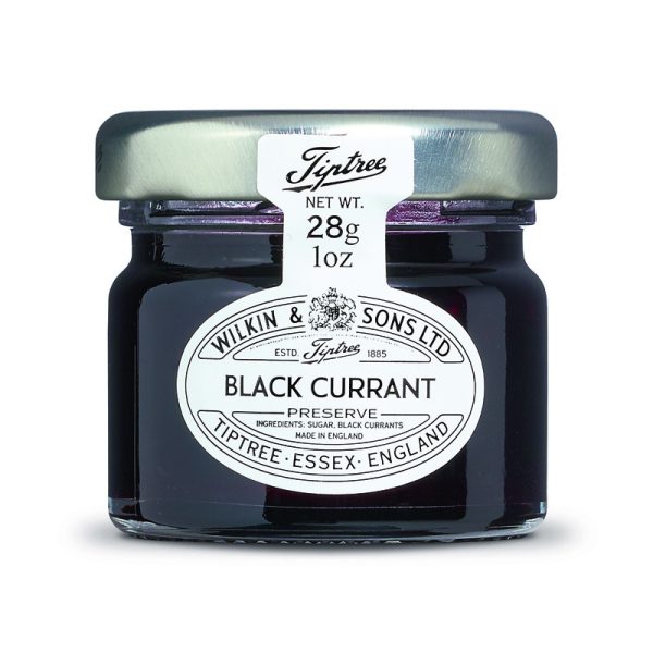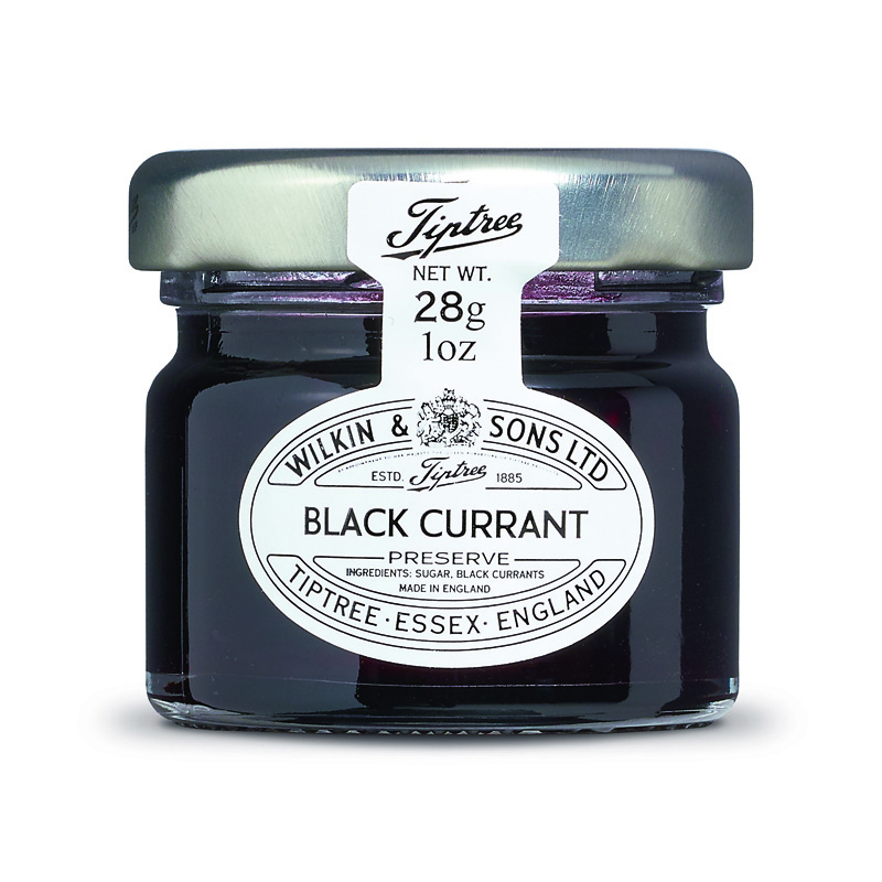 As groselhas pretas premium são embaladas em cada frasco desta conserva de groselha preta.