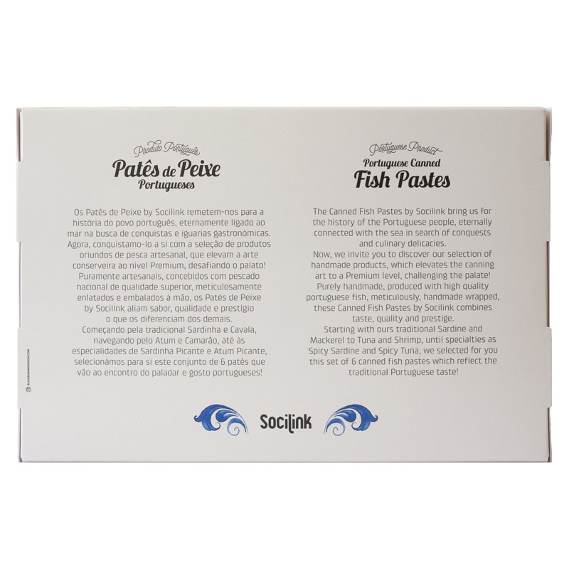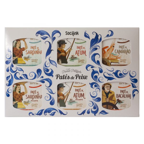 Conjunto composto pelos seguintes Patés da Nevis: Sardinha, Sardinha Picante, Atum, Atum Picante, Camarão, Bacalhau.