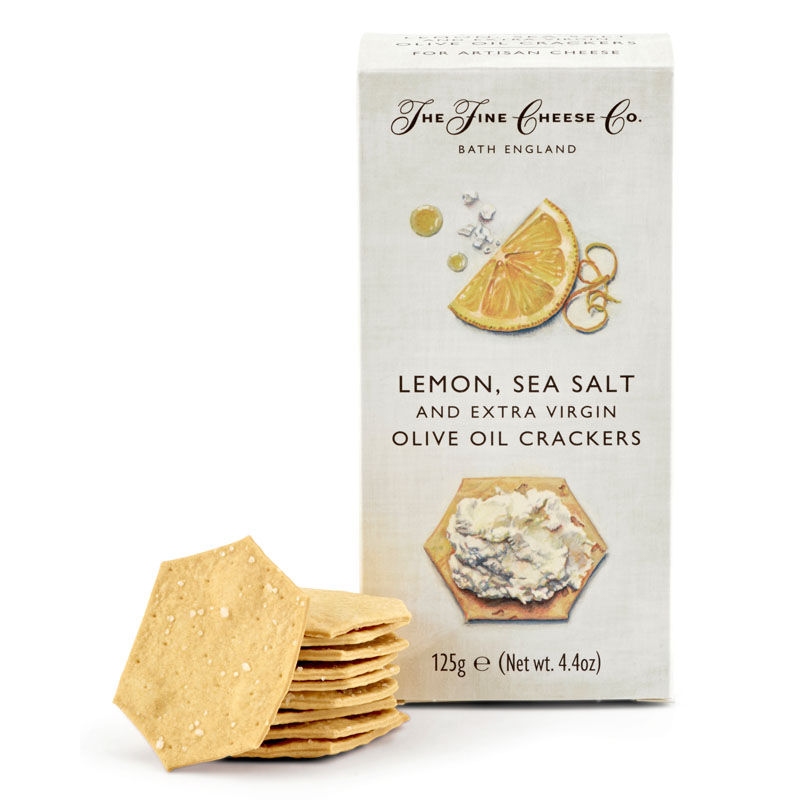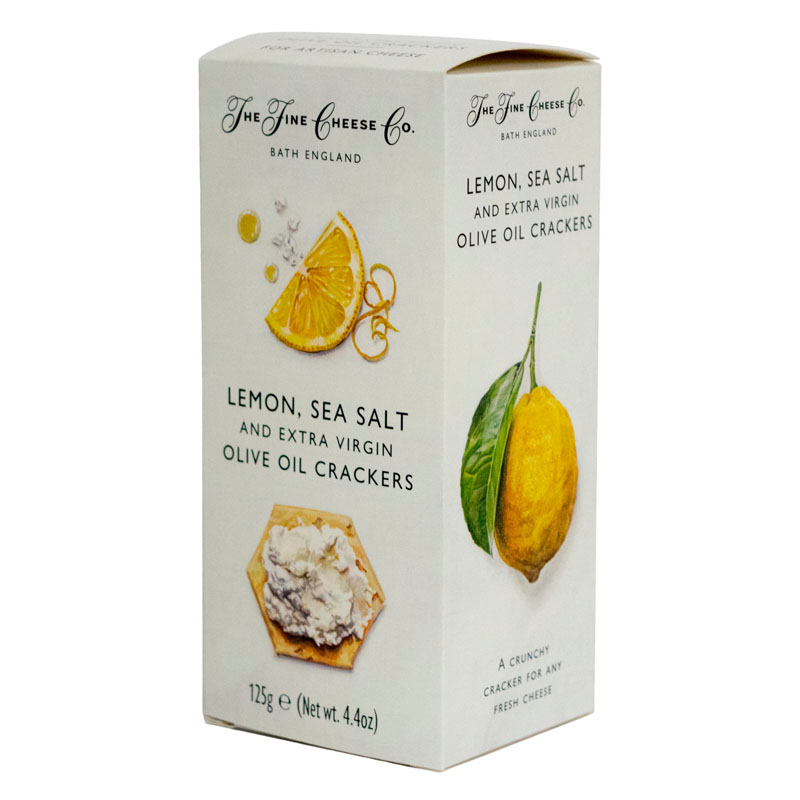 Estas Crackers Aromatizadas com Limão Sal Marinho e um toque de Azeite Extra Virgem fazem parte da nova linha de Crackers da The Fine Cheese Co. De natureza delicada possuindo uma ligeira acidez proveniente do limão são ideais para queijos ligeiramente adocicados e para queijos cremosos.