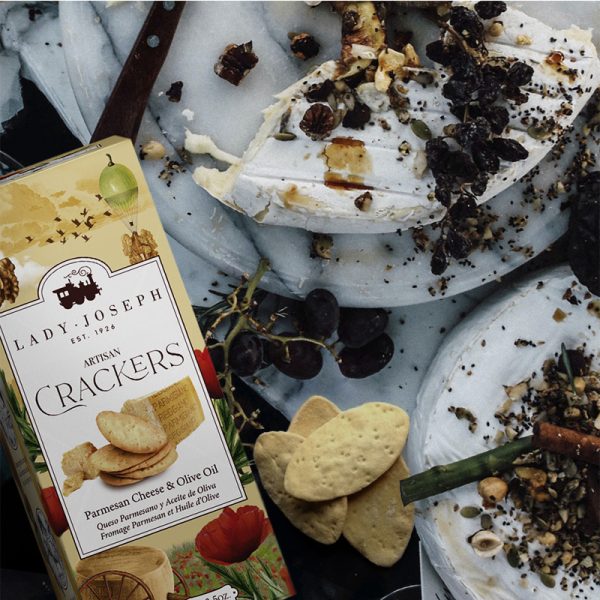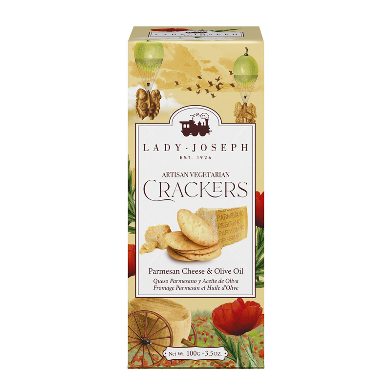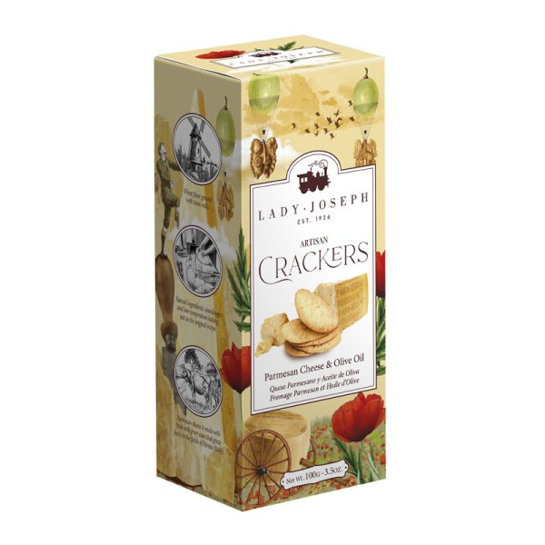Um dos melhores queijos do mundo que, juntamente com a farinha de moagem em pedra e o azeite, conferem a estas crackers uma qualidade e sabor incomparáveis. Após preparação a massa é deixada a descansar por 12 horas sendo de seguida cozida lentamente para manter os nutrientes e obter uma deliciosa cracker extrafina e crocante.