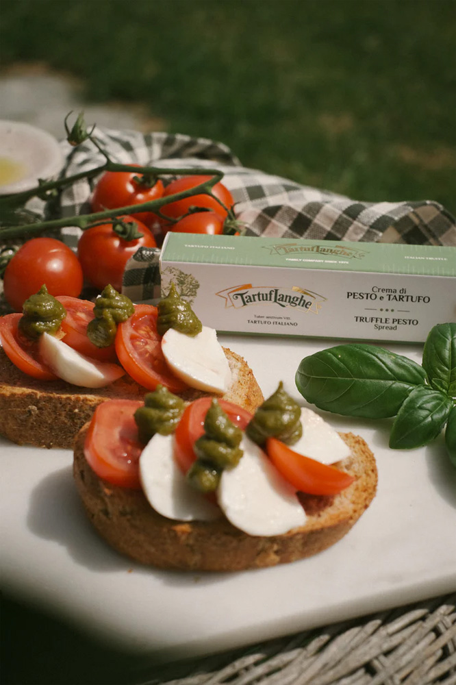 Preparado com Trufa Italiana de Verão (Tuber aestivum Vitt.), possui uma cor verde vibrante e um sabor rico a manjericão e queijo Parmigiano Reggiano DOP.