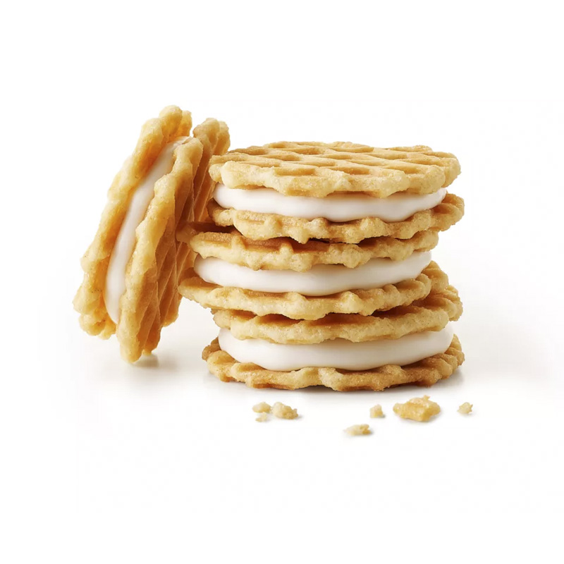 Pequenas Crisps de manteiga unidas por um delicioso recheio de creme de baunilha. Graças à prática embalagem para levar, pode desfrutar deste novo produto a qualquer hora do dia, sozinho ou acompanhado!