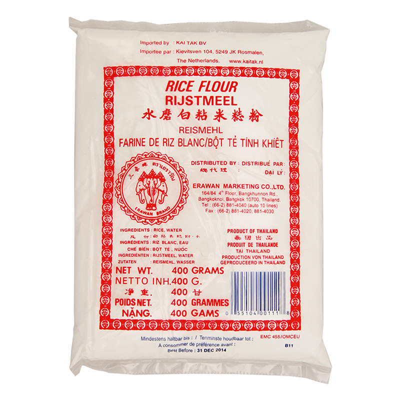 A farinha de arroz tem baixo teor de gordura saturada, colesterol e sódio. É rica em magenésio, o que ajuda no bom desenvolvimento dos ossos e cartilagens. Também ajuda na melhor absorção do cálcio. A farinha de arroz da Erawan também é usada para engrossar molhos em diversos pratos orientais.