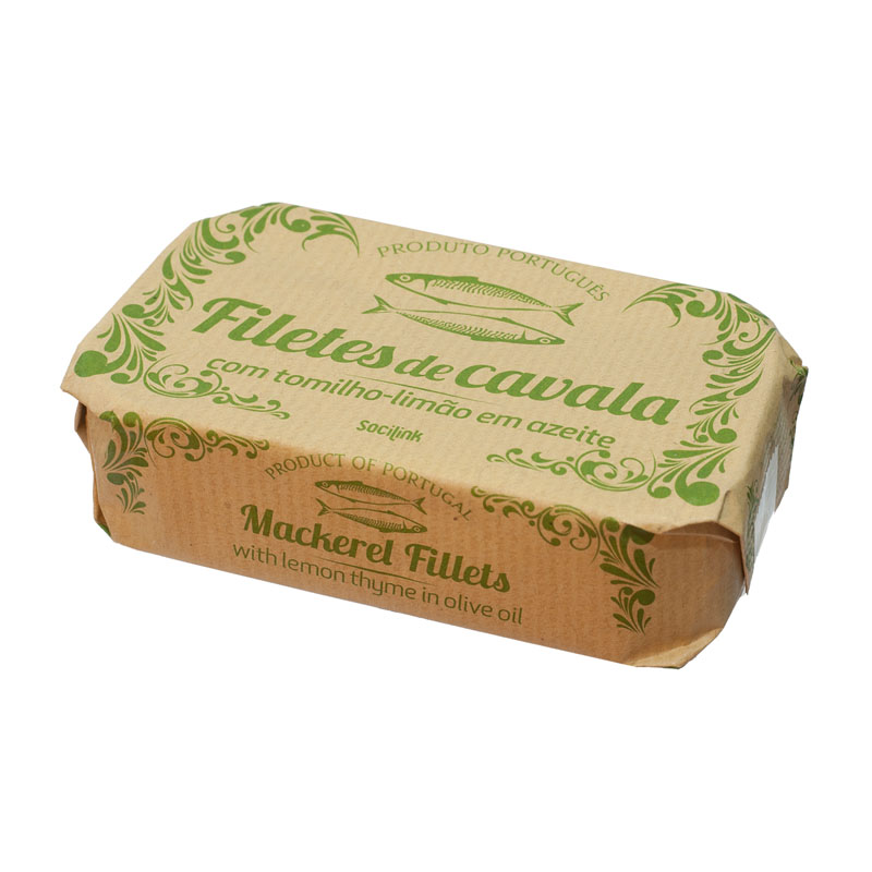 Início Produtos Conservas & Charcutaria Conservas de Peixe Filetes de Cavala com Tomilho-limão em Azeite bySocilink 120g