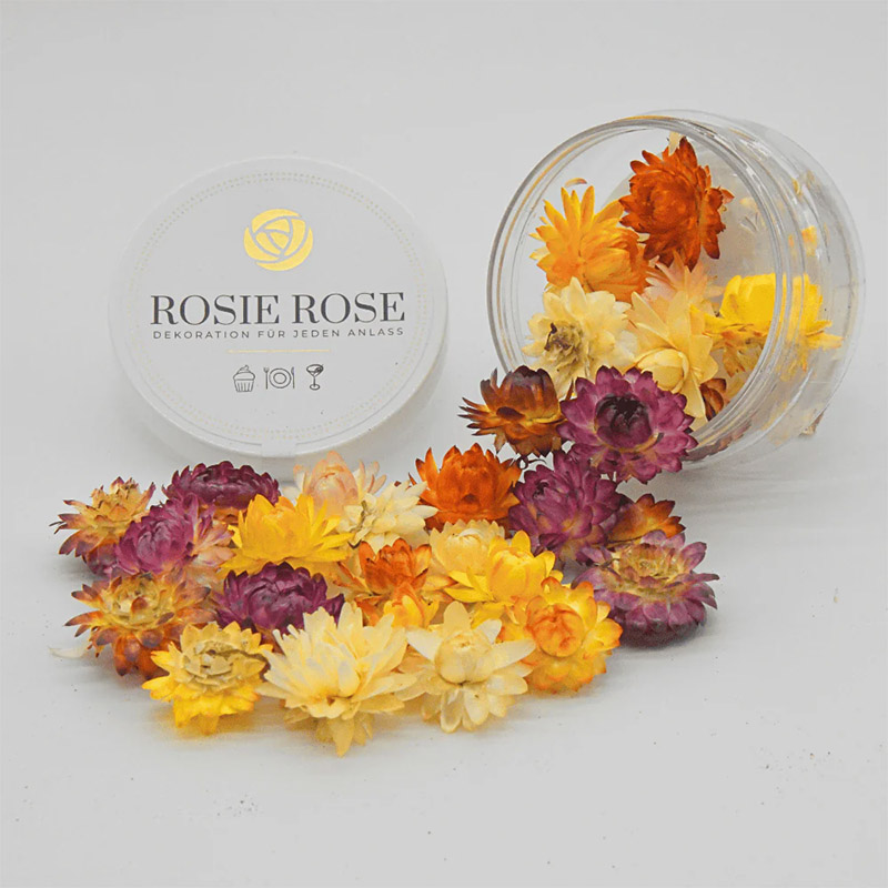 Frescas como acabadas de colher as flores da ROSIE ROSE são delicadamente secas ao sol, mantendo a sua cor natural e parecendo acabadas de colher. Esta harmonia entre natureza e experiência fazem da ROSIE ROSE a escolha número um para as mais belas flores comestíveis.