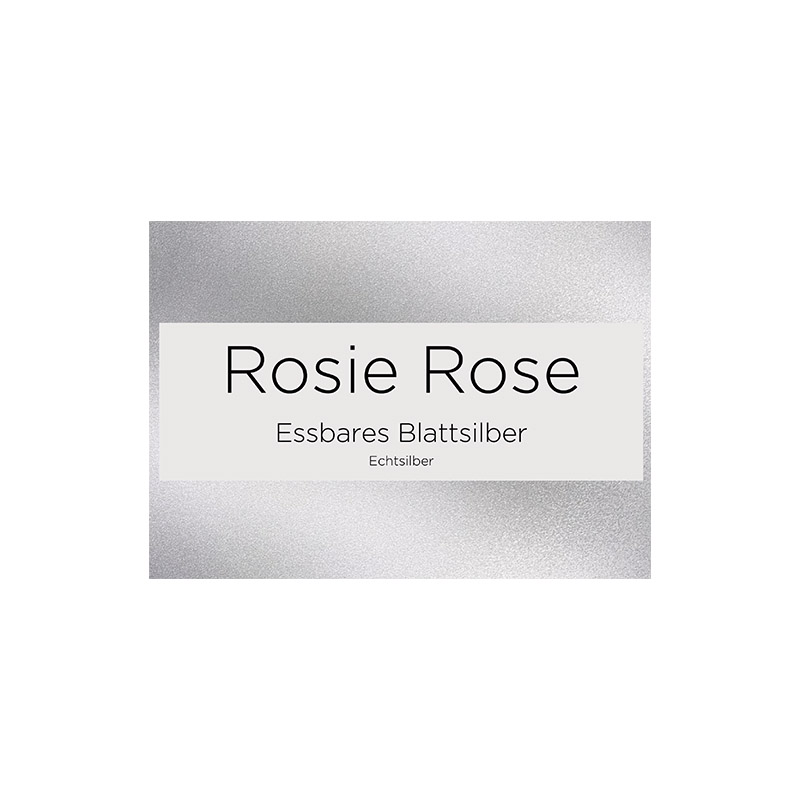 Com a folha de prata da ROSIE ROSE, pode dar às suas criações um toque de verdadeiro luxo. Cada folha é feita de prata 999 100% comestível e está fixa a uma fina película de suporte que facilita o posicionamento preciso. As folhas são insípidas, vegan e certificadas como seguras para alimentos. Receberá cinco folhas por pacote. As folhas de prata medem 6 x 6 cm e são ideais para detalhes elegantes em bolos, chocolates, doces ou pratos especiais. Utilizando uma pinça fina, as folhas podem ser aplicadas sem esforço e sem quebrar, permitindo criar até mesmo detalhes complexos com precisão e controlo.