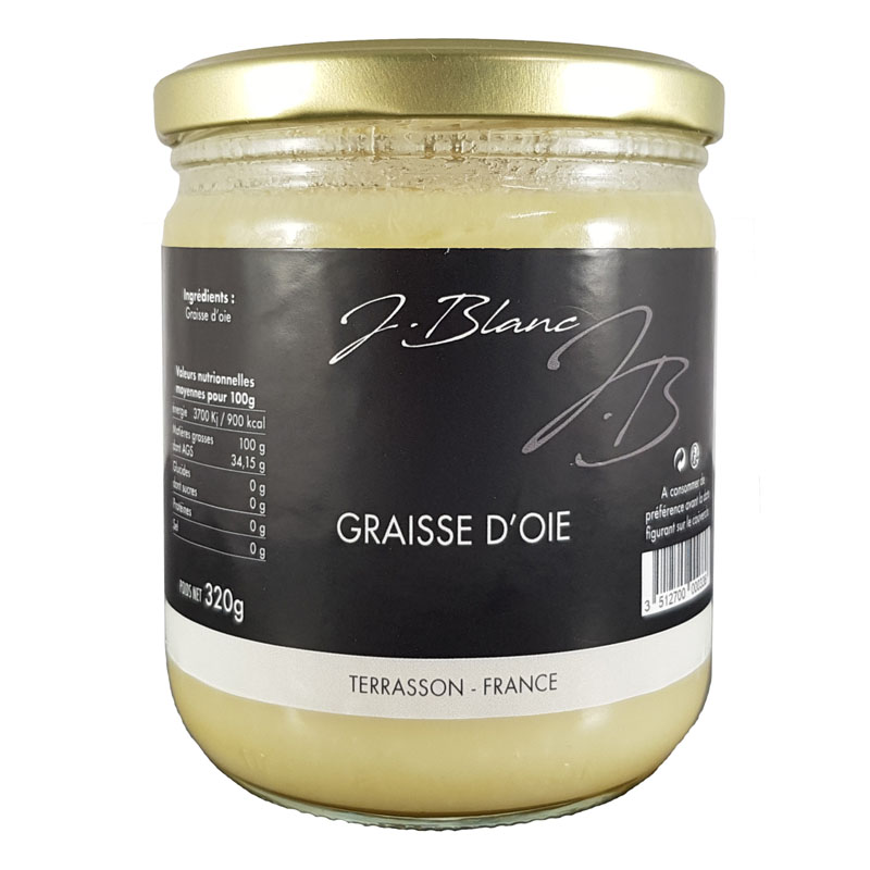 Tal como a banha de porco, a gordura de Ganso da J. Blanc é rico em gorduras monoinsaturadas e saudaveis para o coração. Elas ajudam a baixar o nível de colesterol no sangue e a proteger do risco cardiovascular. Muito suave à temperatura ambiente, tolera altas temperaturas de cozimento e tem uma vida longa. Para uma utilização saudável utilize a gordura de Ganso para dar sabor em ocasiões especiais, caso contrário, prefira a qualidade do azeite e de preferência biológico