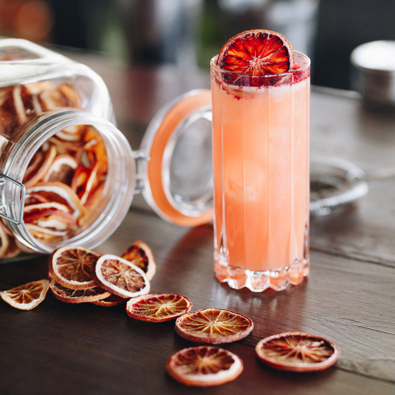 A laranja sanguínea é uma variedade cítrica que se destaca entre suas congêneres pela cor característica. O seu nome, aliás, vem da cor intensa da sua polpa, que varia do vermelho ao roxo, atribuída à presença de antocianinas, pigmentos naturais que se desenvolvem em resposta às variações de temperatura durante o período de maturação. Este fenómeno não só lhe confere o seu aspecto distinto, mas também contribui para o seu sabor característico. Em termos de sabor, a laranja sanguínea combina a doçura típica da laranja com um toque de acidez, mas é o seu leve final de boca a frutos vermelhos que a torna verdadeiramente única. Combina perfeitamente com a maioria dos cocktails, refrigerantes, vermutes e gins. Precisa de ajuda sobre como misturar gins e frutas desidratadas? Verifique este LINK.