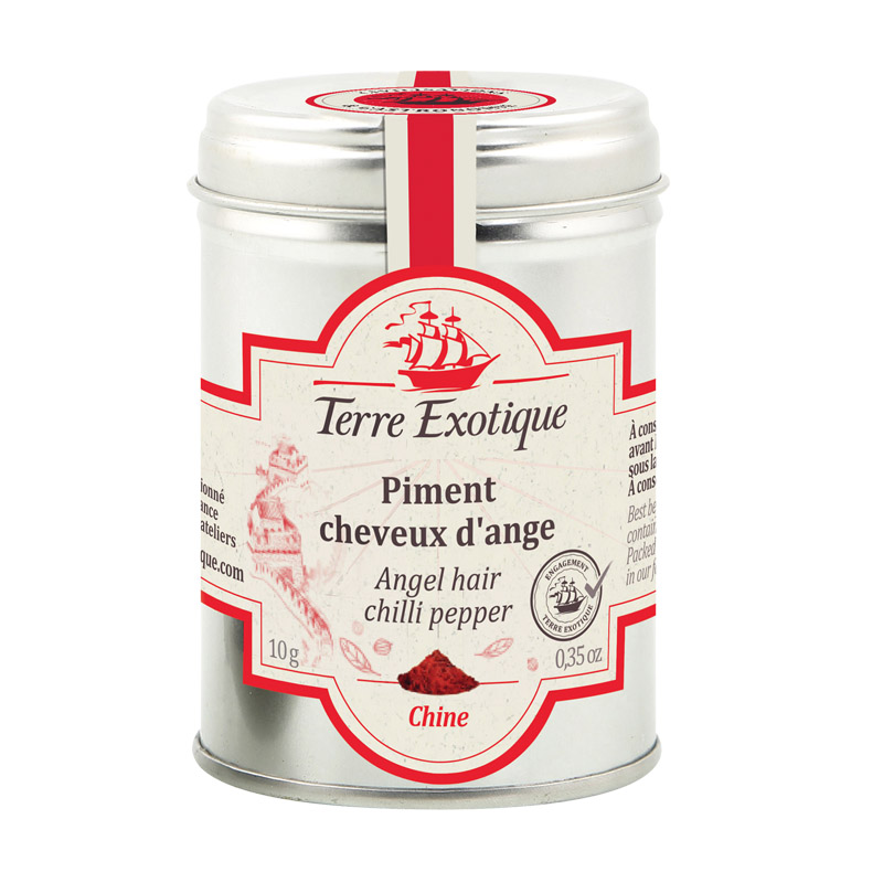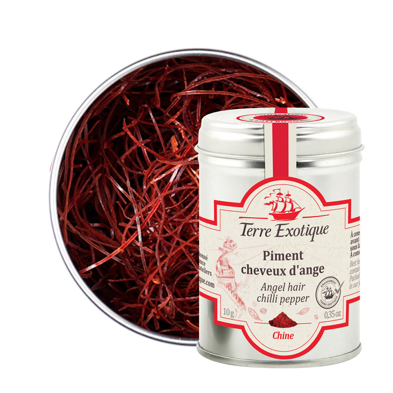A Malagueta ‘Angel hair’ da Terre Exotique são fios extremamente finos de malaguetas vermelhas secas ao sol, cultivadas na região de Tianjin no norte da China. Com um calor suave e frutado, esta malagueta é ideal como enfeite de qualquer prato que peça um pouco de cor e picante.