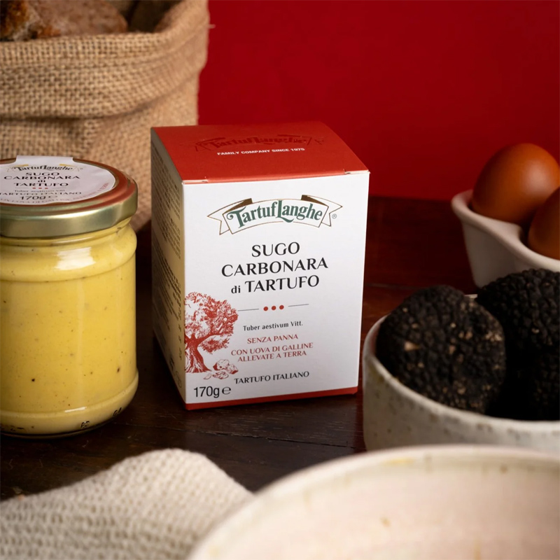 A versão contemporânea da Tartuflanghe do famoso molho italiano: o bacon é substituído pela trufa italiana de verão (Tuber aestivum Vitt.).