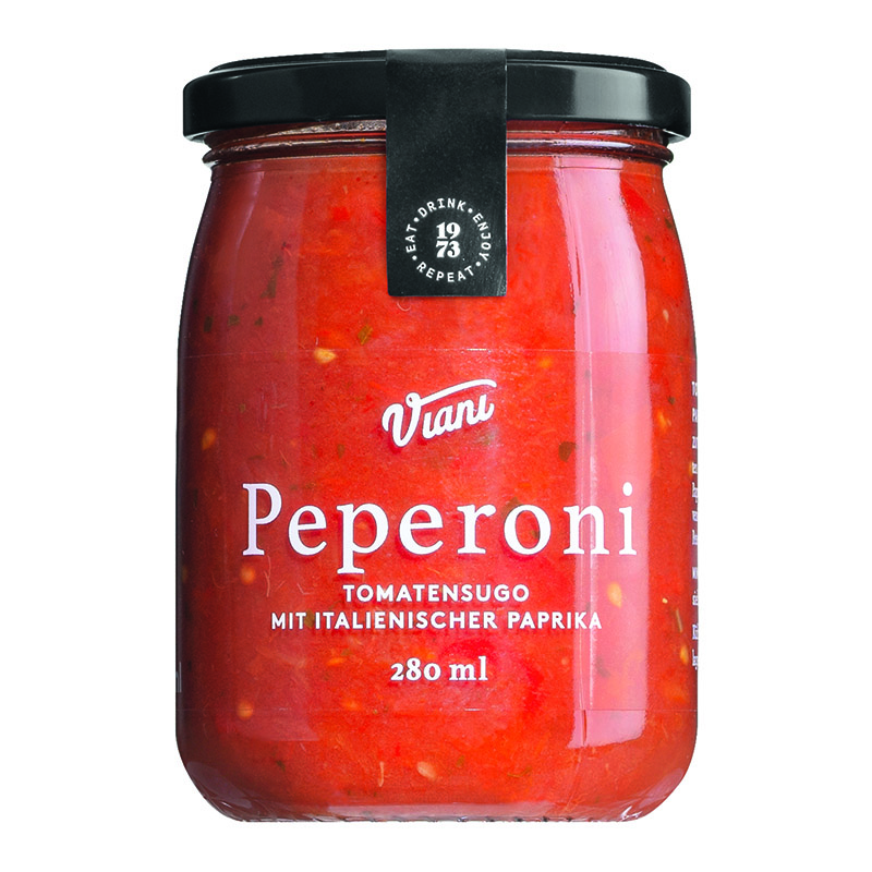 Molho de tomate frutado, temperado com pimentos e ervas italianas. Combina bem com penne e fusilli, com queijo pecorino ralado ou mozarela picada.