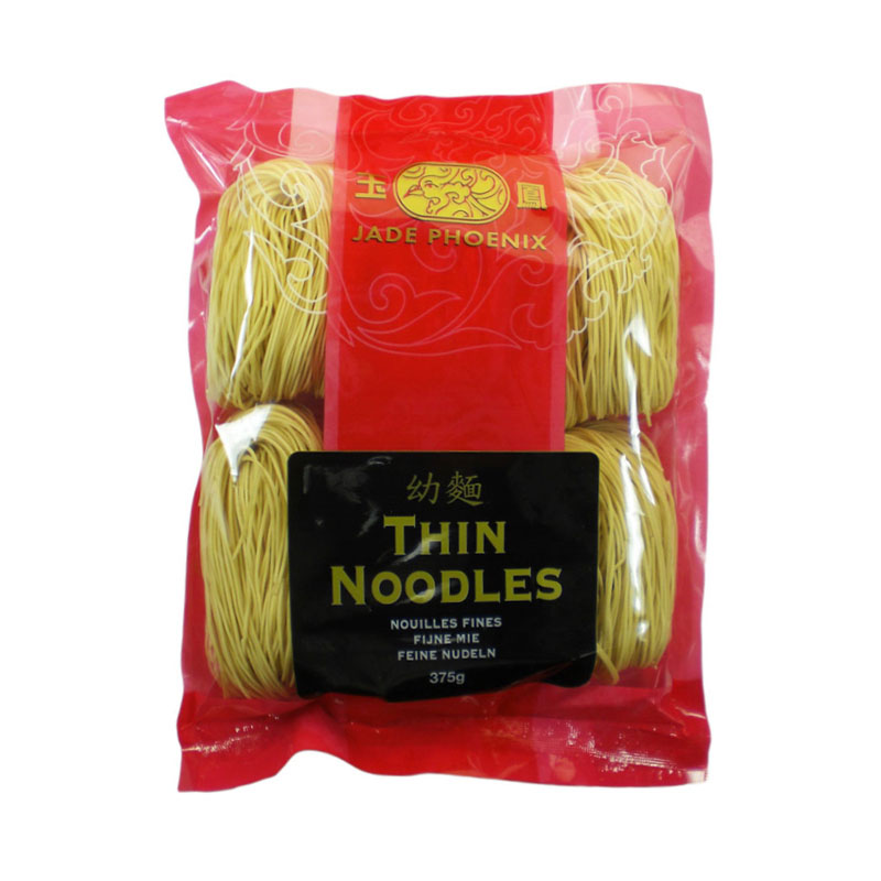 Um ingrediente essencial para todos os pratos asiáticos. Os Noodles Finos da Jade Phoenix são feitos de farinha de trigo e ovos. Perfumados, leves e deliciosos, com o aroma dos ovos e a suavidade do trigo. Ricos em nutrientes, estes noodles são o alimento básico dos restaurantes chineses e amplamente utilizados em lanches tradicionais chineses.