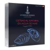 Ostras marinadas em água do mar. La Mar de Tazones abre, seleciona e prepara manualmente as ostras frescas. Como resultado, as ostras mantêm o seu sabor natural, com o perfeito toque de sal, enquanto a água do mar se transforma num delicioso caldo de marisco.