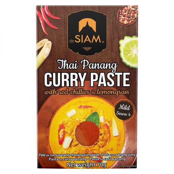 Desfrute de uma deliciosa refeição com autêntico Thai Panang Curry. A pasta de Caril Massaman da deSIAM contém uma combinação suave de malagueta vermelha, citronela aromática e especiarias torradas de forma a oferecer um Caril Panang cheio de sabor!