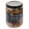 Perdiz vermelha de campo (65%), azeite virgem, óleo vegetal (girassol), vinagre envelhecido (SULFITOS), alho, louro, sal e grãos de pimenta.