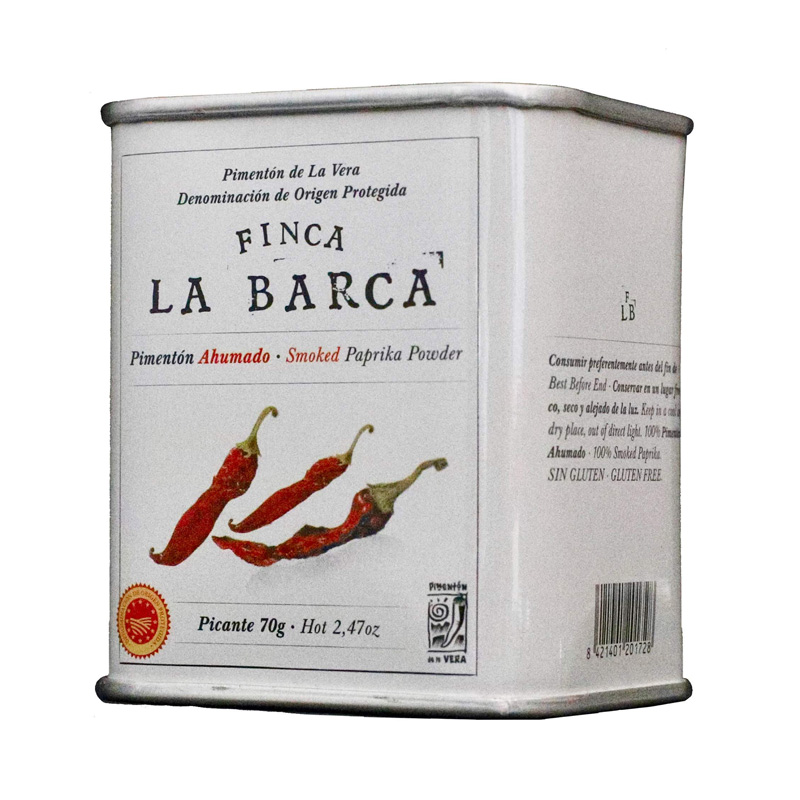 O Pimentão de La Vera Picante Fumado é feito de pimentões recém-colhidos que foram defumados por 15 dias em madeira de carvalho. O resultado é um pimentão intensamente defumada, picante, essencial para receitas espanholas autênticas como paella, tortilhas, guisados ??e molhos.