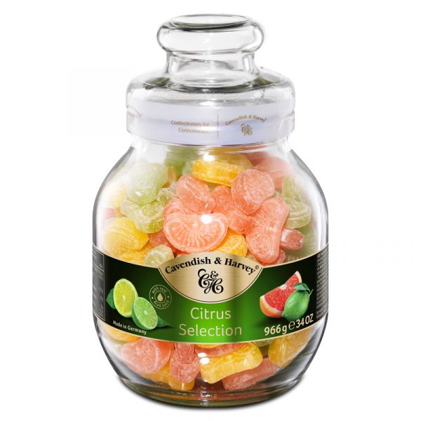 Kosher, Halal, sem Glúten e sem conservantes. Estes rebuçados Cítricos da Cavendish and Harveysão feitos a partir de sumo de fruta, sabores e cores naturais, de forma a obter o equilíbrio perfeito entre sabores azedos, amargos e exóticos. Apresentado em pequenos frascos inspirados nos designs tradicionais vitorianos, são perfeitos para decorar a sua mesa e deliciar os hóspedes e amigos.