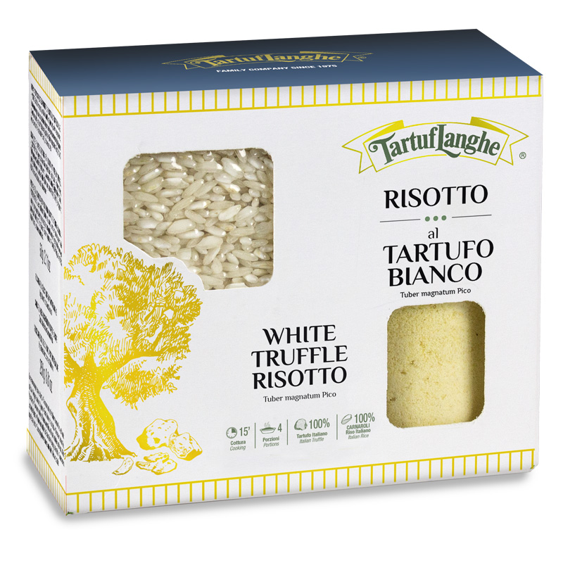 Uma receita completa para um risoto rico e cremoso com Trufa Branca. Pronto em 15 minutos, apenas é necessário adicionar água e sal. (Receita para 4 porções.)