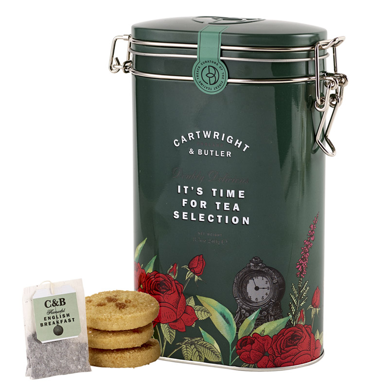 A selecção perfeita para o pequeno almoço. Inclui biscoitos feitos com manteiga e com pedaços de caramelo salgado combinado com o Chá English Breakfast.