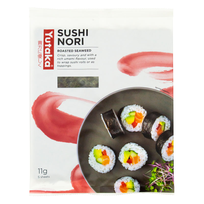 O Sushi Nori Yutaka é feito com algas pretas e é ideal para fazer sushi. Pode também ser esfarelado e polvilhado sobre saladas e cozinhados em wok, ou misturar com sementes de sésamo, pimenta e sal para fazer Furikake – um popular tempero de arroz quente.